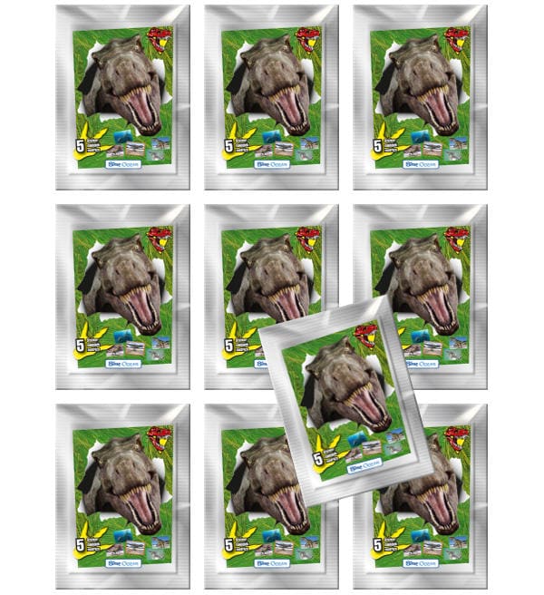 10 Tüten aus der "Blue Ocean Dinosaurier 2022" Sticker-Kollektion. Jede Tüte enthält 5 Sammelbilder.