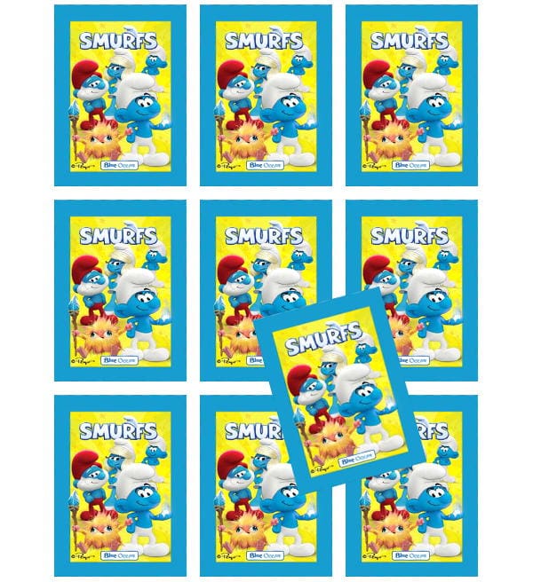 10 Tüten aus der "Blue Ocean Schlümpfe: Der grosse Kinofilm" Sticker-Kollektion (2025). Jede Tüte enthält 6 Sammelbilder.