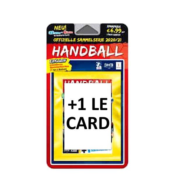 Blister aus der "Handball Bundesliga 2020/21 Sticker + Cards" Kollektion von Blue Ocean und Victus. Jeder Blister enthält 32 Sticker + 8 Trading Cards + 1 llimitierte Karte.