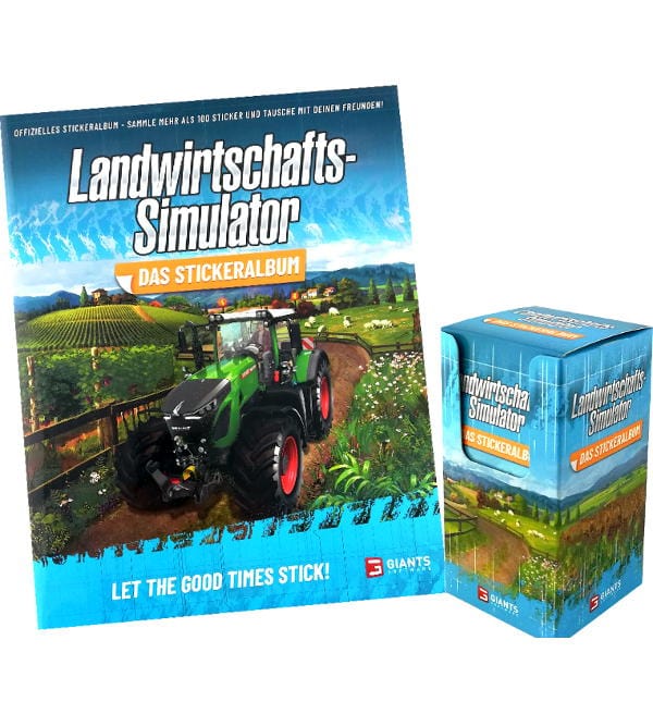 Album + Display mit 36 Tüten aus der "Landwirtschafts-Simulator - Das Stickeralbum" Sticker-Kollektion (2022) von Giants Software. Jede Tüte enthält 5 Sticker.