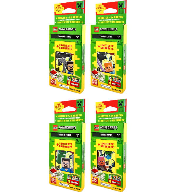 Alle 4 verschiedenen Lego Minecraft Serie 1 Eco-Blister mit insgesamt 16 Tüten (=96 Karten) plus diese 4 verschiedenen limitierten Karten: