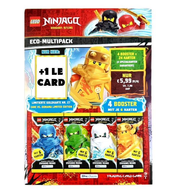 Lego Ninjago Serie 9 Dragons Rising Multipack mit 4 Tüten (=24 Karten) plus 1 limitierte Karte. In jedem Multipack ist eine von folgenden 4 limitierten Karten enthalten: