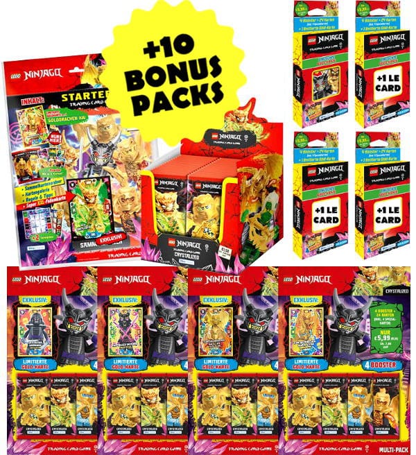 Mega-Bundle + 10 Bonus Packs zum Lego Ninjago Serie 8 Trading Card Game "Crystalized" mit folgendem Inhalt: