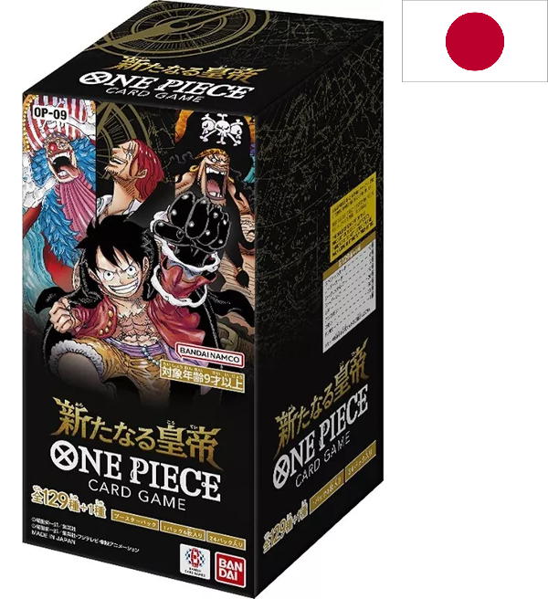 Display mit 24 Tüten (japanische Version) zur "One Piece Card Game - The Four Emperors OP-09" Trading Card Kollektion. Jeder Booster enthält 6 Karten, somit sind in der Box insgesamt 144 Cards enthalten.