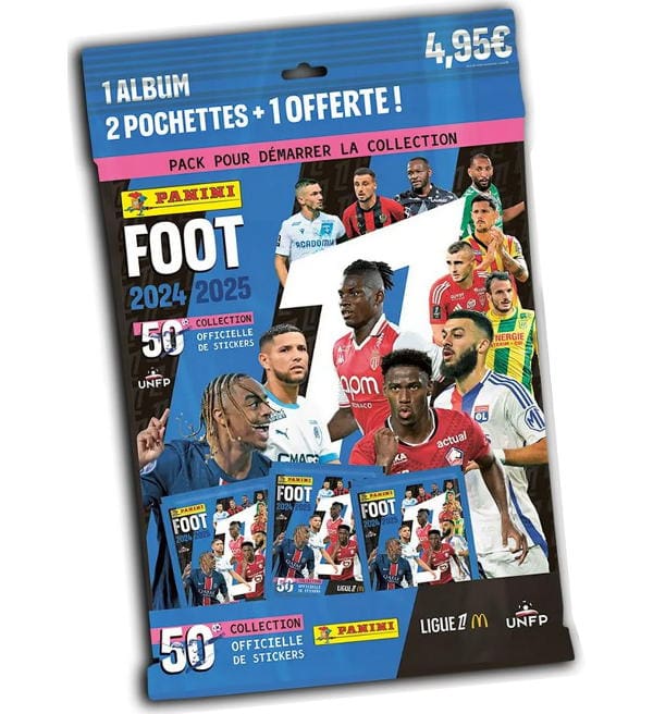 Starter Pack zur "Panini Foot 2025 Ligue 1" Sticker-Kollektion. Jede Tüte enthält 5 Sammelbilder.