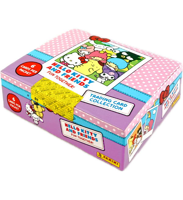 Display mit 24 Tüten zur "Panini Hello Kitty & Friends - Fun Together" Trading Card Kollektion. Jeder Booster enthält 6 Karten, somit sind in der Box insgesamt 144 Cards enthalten.