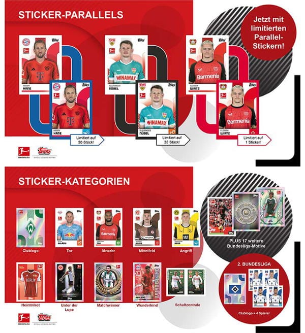 Album + 1 Display (=50 Tüten) der Topps Bundesliga 2024/2025 Sticker-Kollektion. Jede Tüte enthält 7 Sammelbilder, somit sind es 350 Sticker pro Display.