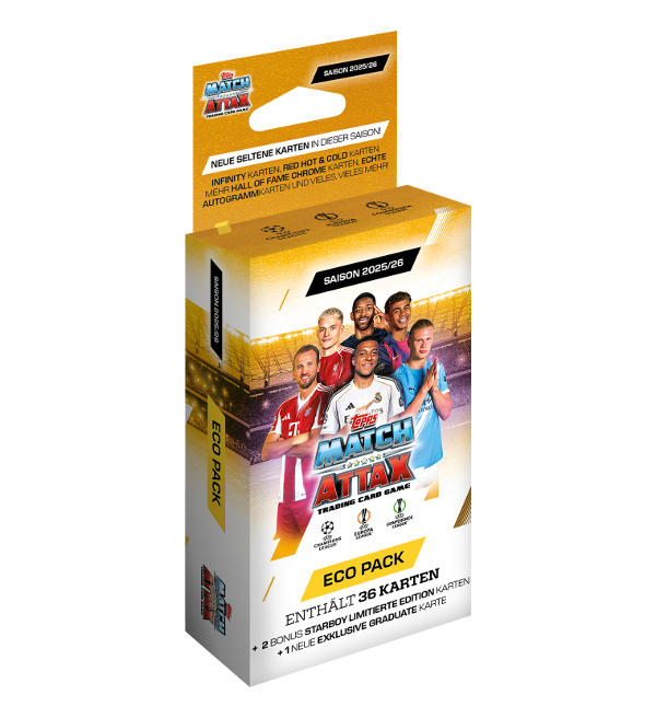 Eco Pack zur Topps UCC Champions League 2025/26 Match Attax Trading Card Serie mit folgendem Inhalt: