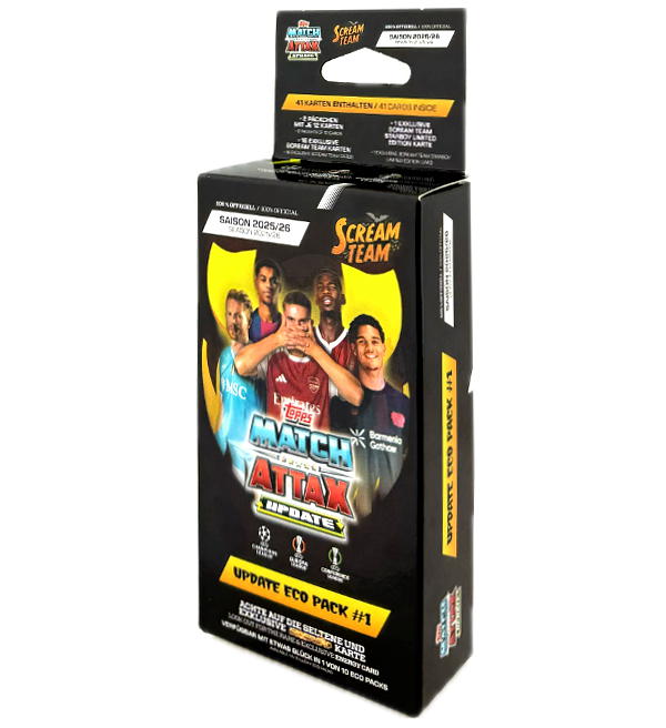 Update Eco Pack 1 "Scream Team" zur Topps UCC Champions League 2025/26 Match Attax Trading Card Serie mit folgendem Inhalt: