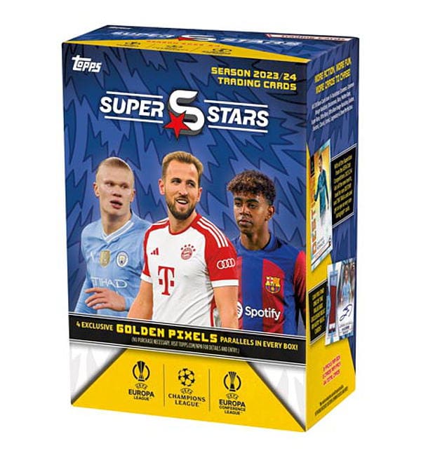 Blaster Value Box zur Topps UEFA Champions League Superstars Season 2023/24 Trading Cards Kollektion mit folgendem Inhalt: