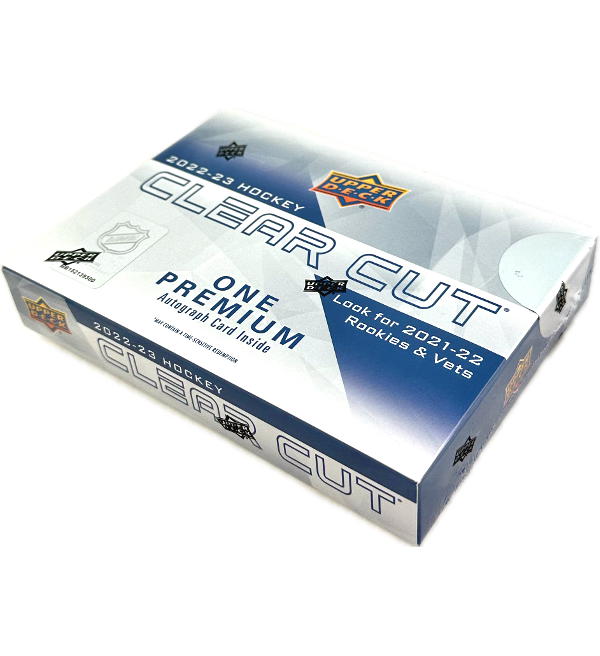 Hobby Box mit 1 PREMIUM AUTOGRAPH CARD aus der "Upper Deck NHL 2022-23 Hockey - CLEAR CUT" Trading Card Kollektion.